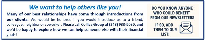 Our team is here to help you with every step of your journey toward your financial goals. Please feel free to reach out to us with any questions or concerns you may have. We greatly value the trust and confidence you place in our firm and look forward to continuing to serve you.